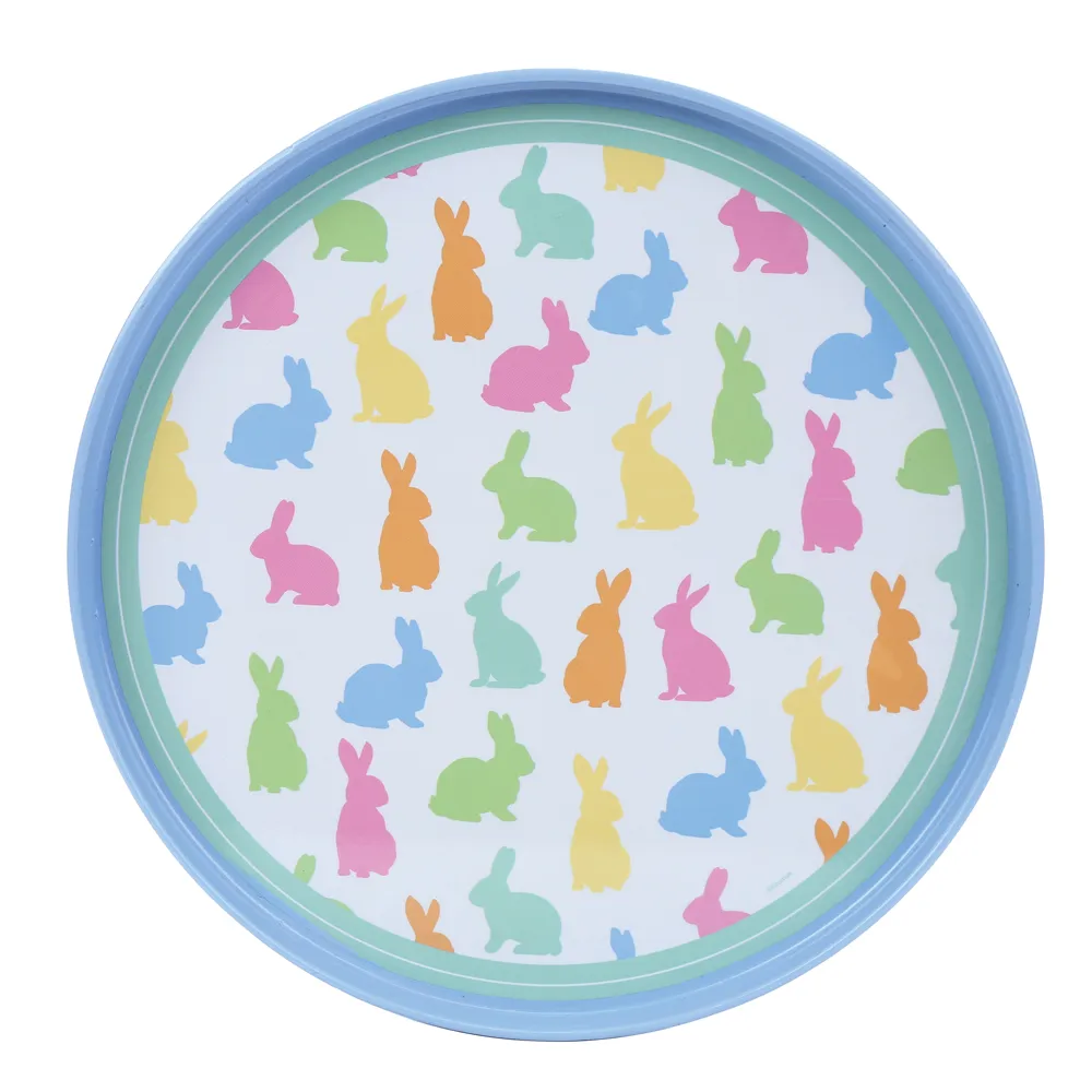 Bandeja Redonda Estampada Com Borda Elevada Produzida Em Plástico Leve e Resistente, Perfeita Para Servir Alimentos Ou Decorar.