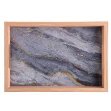 - Uma peça de decoração que combina elegância e funcionalidade, essa bandeja retangular apresenta um efeito mármorizado em sua cor cinza, tornando-se uma opção atraente para quem busca adicionar um toque sofisticado ao ambiente;